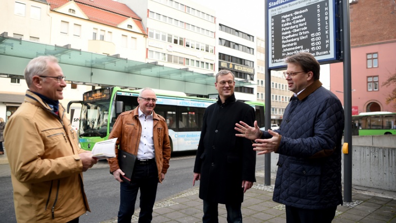 • Der Ausbau des Öffentlichen Personennahverkehrs (ÖPNV) wird mit folgenden Maßnahmen weiter vorangebracht: Weitere Optimierung der Linien gemäß den Vorschlägen des Nahverkehrsplan, Ausbau der bedarfsorientierten Angebote (AST), Modernisierung weiterer Haltestellen; weitere Ausstattung der Haltestellen mit digitalen Anzeigen (DFI); Optimierung der Tarifzonen in der Stadtregion; Elektrifizierung des Busfuhrparks.