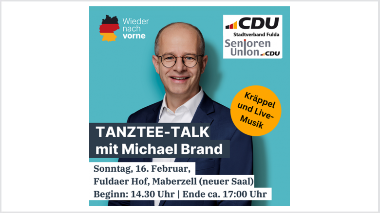 Ab 15:00 Uhr steht Ihnen unser Bundestagsabgeordneter Michael Brand für persönliche Gespräche direkt an den Tischen zur Verfügung. Nutzen Sie die Gelegenheit zum offenen Austausch über aktuelle politische Themen oder persönliche Anliegen.